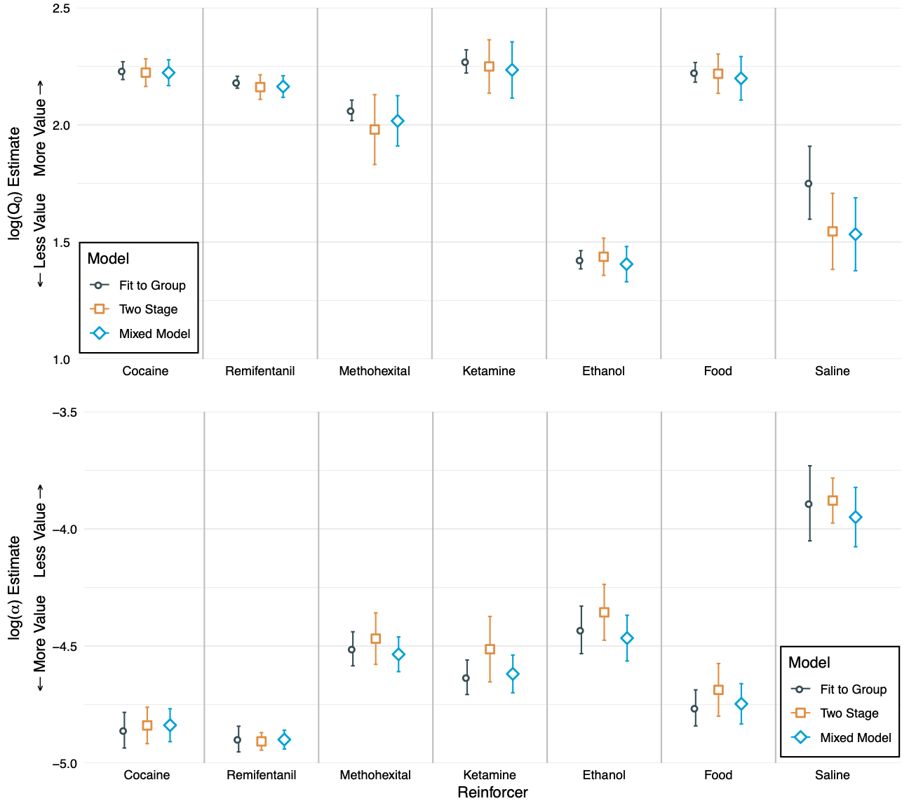 Traditionally, demand data might be analyzed with either a “fit-to-group” method (fit one curve to aggregated data) or a “two-stage” method (fit each individual separately, then compare parameters). Both have drawbacks, which we have discussed. The first ignores individual differences, the second ignores shared patterns and can have less power.
