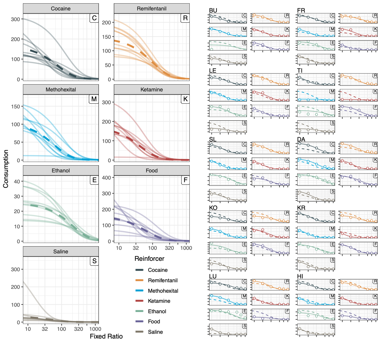 Behavioral economic demand curves (e.g., how consumption of a reinforcer changes as price/cost increases) are often fit for each subject or at the group level. Mixed models bring a modern approach here.