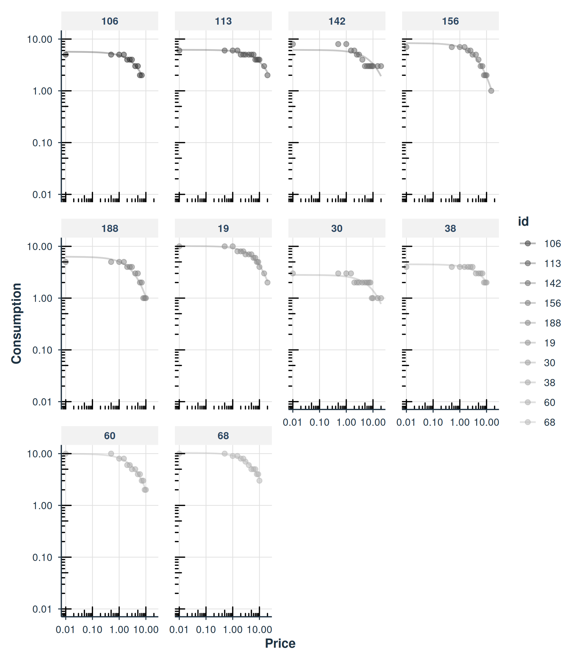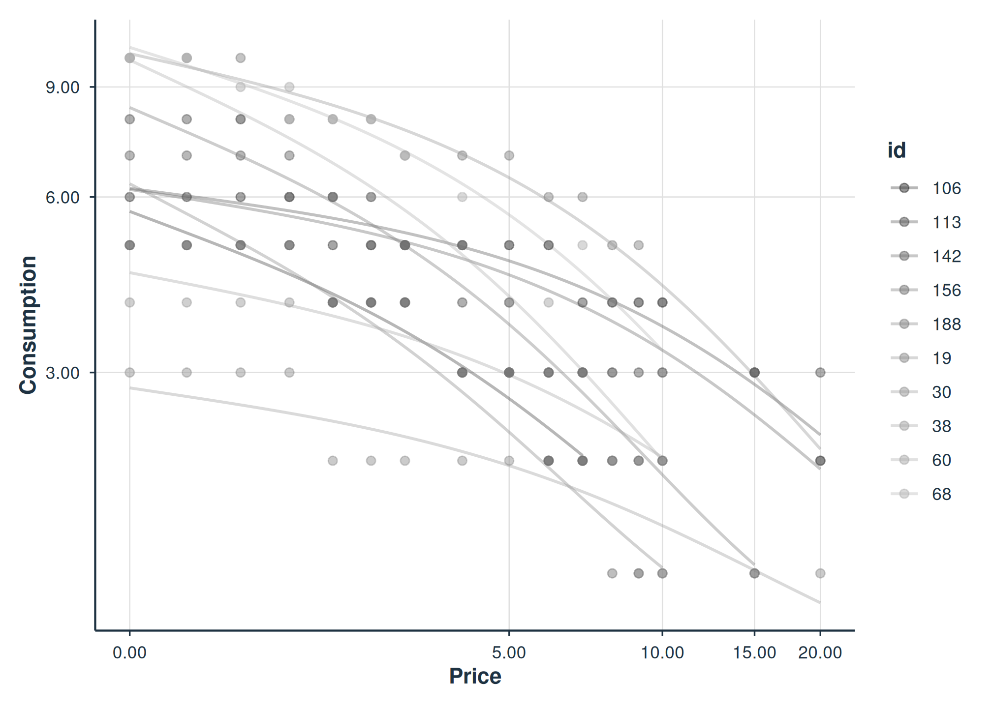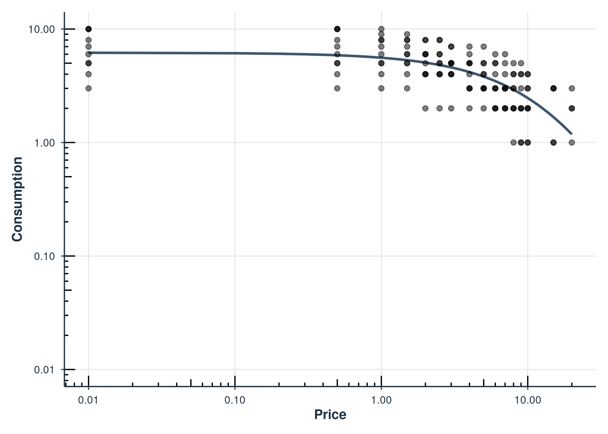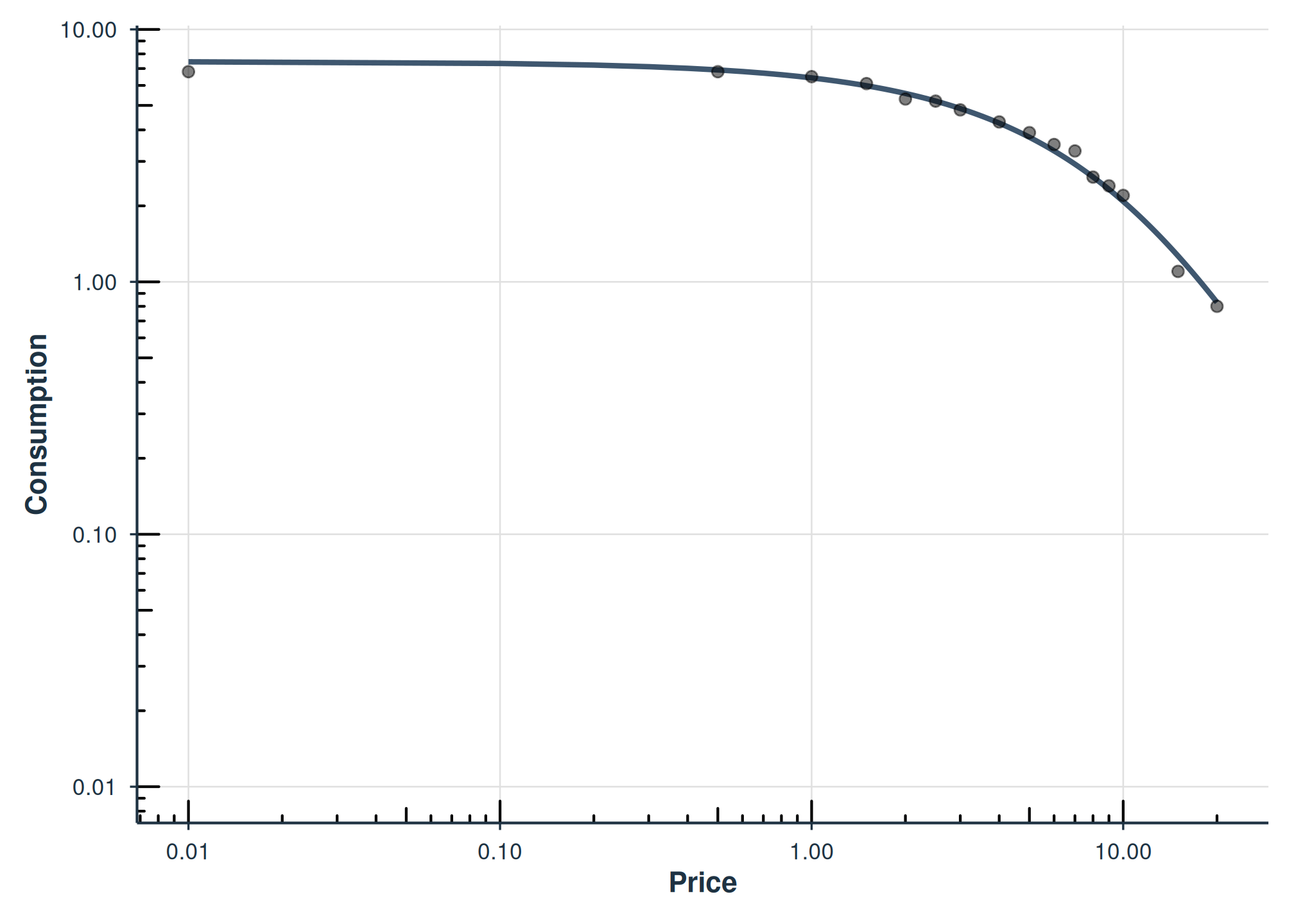 agg = "Mean" computes the mean consumption at each price